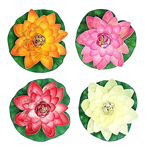 DierCosy 4-delige set drijvende vijverdecoratie, vijverplanten decor kunstmatige realistische schuim lotus water lelie bloem / lotus schuim bloem drijven vijver decor water lelie / lotus schuim bloem