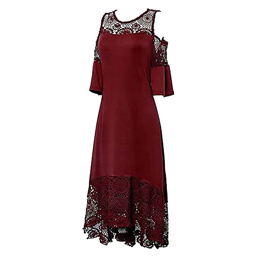 Specification: poliy Dames kanten naden ruches korte mouwen pulloverjurk zomerjurken lange strandjurken jurken jurken dames zomer knielang