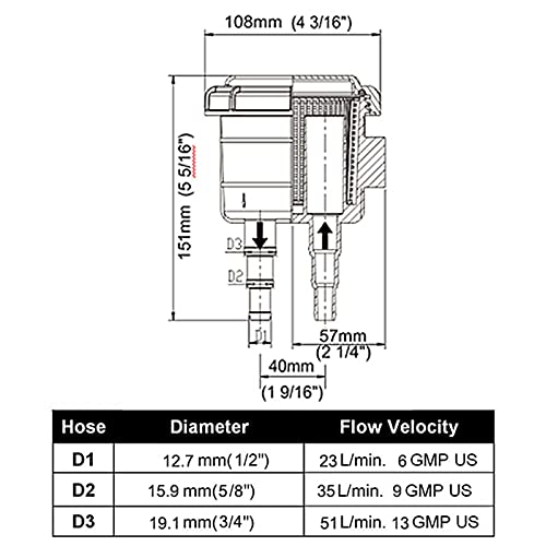 Specification: Ocobetom Zeezeef waterpomp zeeffilter marine boot waterinlaat ruwe koeling waterinlaat inline zeef plastic voor zeewater marine boot accessoires 1/2 inch 5/8 inch 3/4 inch slang