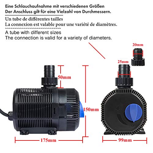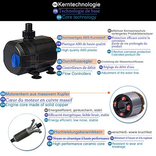 Specification: Yorbay CQB-2000 Vijverpomp Super ECO 35W 2300l/h met 10m stroomkabel beeklooppomp voor tuin, vijver, zoet en zeewater (herbruikbaar)