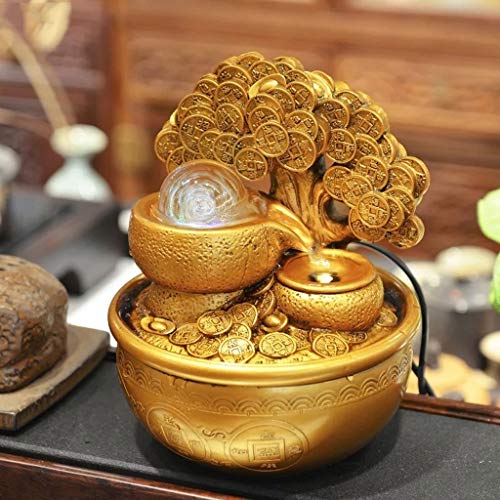 Goud Geld Tree Indoor Fountain Feng Shui Transfe Ball Desktop Fontein Tafelblad Fontein Bevochtiging Decoratie Kantoor Vijverfonteinen