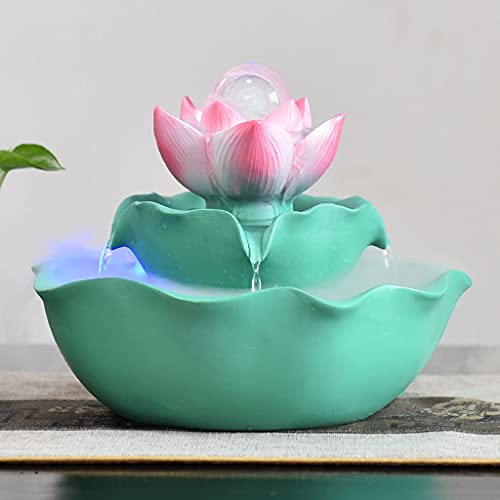 Specification: Lotus Indoor Tabletop Fontein met Rolling Ball, Feng Shui Zen Tabletop Fonteinen Waterval, Perfecte Tafelblad Decoratie Vijverfonteinen (Color : Green, Grootte : With atomizer)