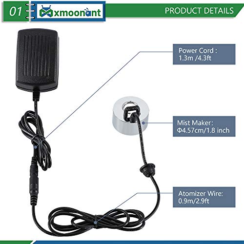 Specification: Mxmoonant 350ml/H Vijvermistmakers Ultrasone Mist Maker Set DC 24V Mini Metalen Verstuiver met Water Splash Guard & Float voor Fontein Vijver Pot Rotstuin Sink