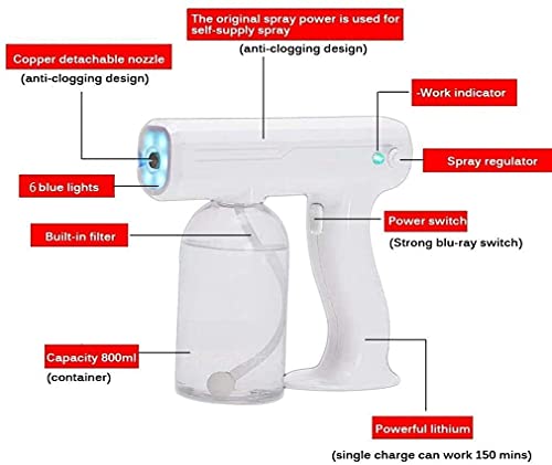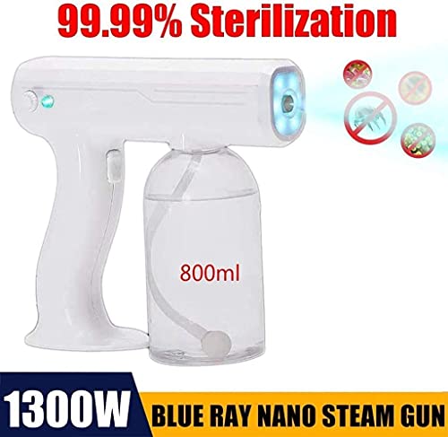 Specification: TOPNIU Ongediertebestrijding AtomizerNano Spray Desinfectiemiddel Gun, Spray Desinfectie Gun 800ML Blauw Licht Nano Stoom Verstuiving Fogger Sprayer, Draagbare Elektrische Desinfеctiοn Spray Fogger, 1300W Handheld Spray