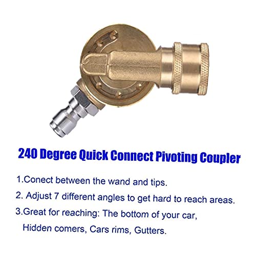 Specification: Draaibare koppeling wasmachine messing connector met 1/4 inch snelle aansluiting voor reiniging moeilijk bereikbare gebieden geel