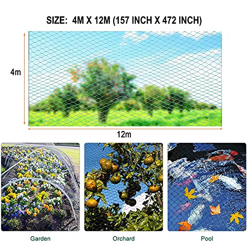 MAIYADUO Tuin Netting Kit 4m x 12m – Bescherm Planten Fruit Bloemen Bomen Vijver Netting Zwembaden Cover Net Met Grond Nagels Plant Mesh Beschermt Vis tegen Bladeren, Anti Vogelvervoer, Visvijver Cover Net